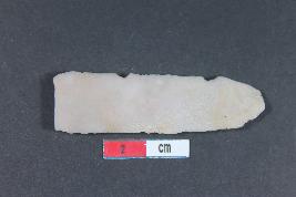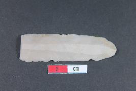 | Description / विवरण | A rectangular blade with positive bulb of percussion on ventral side. It has two dorsal ridges and smooth surface. |