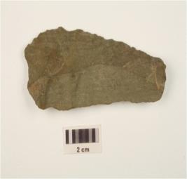 | Description / विवरण | A miniature handaxe making on endstruk chert flake, flake scars on the surface, bulb of percussion on ventral side, perpared plat form on biconvex in section and partly retouch cutting edges. |