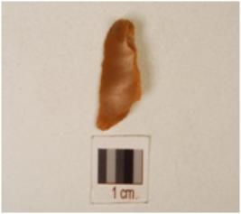 | Description / विवरण | Chert blade with prepared platform, broken from distal end and use-wear marks along the cutting edge. |
