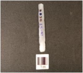 | Description / विवरण | A narrow parallel sided blade, triangular cross section, use wear marks along the cutting edge, prominent bulb and prepared platform. |