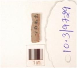 | Description / विवरण | A chert blade with triangular cross section and use-wear marks along the cutting edge. |
