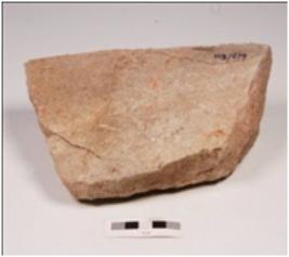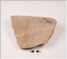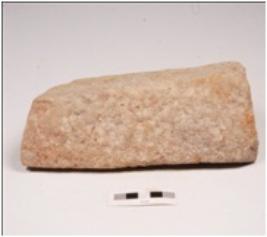 | Description / विवरण | A grinder made on sandstone with a crack on the surface, broken. |