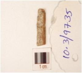 | Description / विवरण | A chert blade with triangular cross section and prepared platform. |
