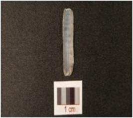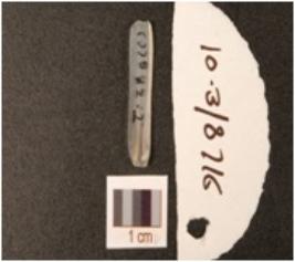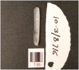 | Description / विवरण | Parallel side blade with prepared platform, prominent bulb and use wear marks on the working edges. |
