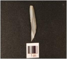 | Description / विवरण | A slender point has sharp pointed tip , prepared platform and blade scars on surface. |