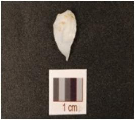 | Description / विवरण | A burin has blade scars on surface and slightly curved pointed sharp working end |