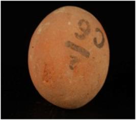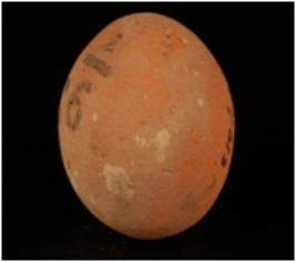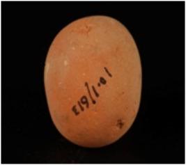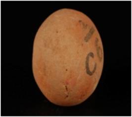 | Description / विवरण | Small handmade terracotta sling ball. Made of well levigated clay, red in colour.The ball is almost round in shape and surface has wash treatment. |