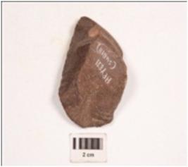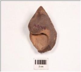 | Description / विवरण | A side scrapper made on quartzite with retouched edges. |