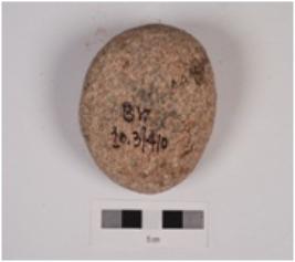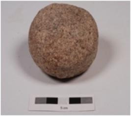 | Description / विवरण | A stone ball, oval in shape and surface is rough, chipped off. |