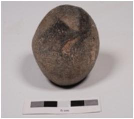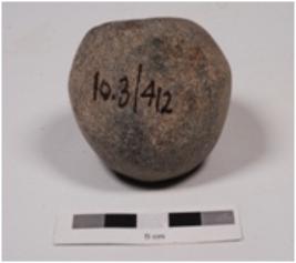 | Description / विवरण | A stone ball, uneven shape. Natural depression on surface. Surface is smooth and black in colour. |