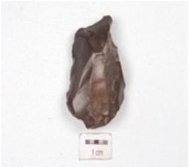 | Description / विवरण | A burin has blade scars on surface and slightly curved pointed working end |