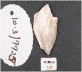 | Description / विवरण | A burin has blade scars on surface and slightly curved pointed end on both sides. |