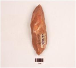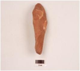 | Description / विवरण | A miniature handaxe made on quartzite side struck flake, plano convex in cross section, flake scars on both side and wavy working edge. |