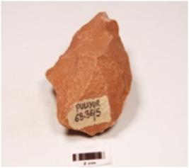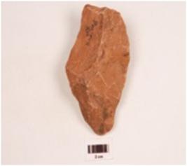 | Description / विवरण | A handaxe made on quartzite side struck flake, plano convex in cross section, flake scars on both sides and wavy working edge. |