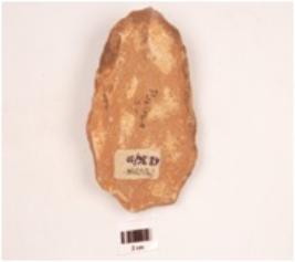| Description / विवरण | A handaxe made on quartzite end struck flake, prepared platform, bulb absent, flake scars on one side, plano-convex in cross section and wavy working edge. |