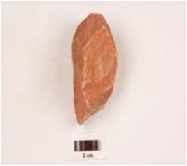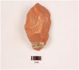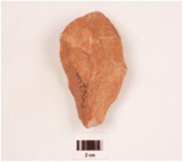 | Description / विवरण | A miniature handaxe made on quartzite end struck biconvex in cross section, flake scars on both sides, pointed end broken and wavy working edge. |