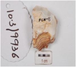 | Description / विवरण | A burin has blade scars and cortex on surface and slightly curved pointed working end |