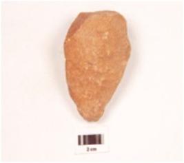 | Description / विवरण | A quartzite end struck flake, plano convex in cross section, cortex intact on one side, prepared platform and prominent bulb on ventral side. |
