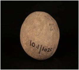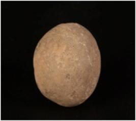 | Description / विवरण | Handmade terracotta round shaped sling ball, made with well levigated clay, hollow from inside, surface treated with a wash in buff colour, rough surface. |