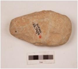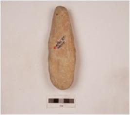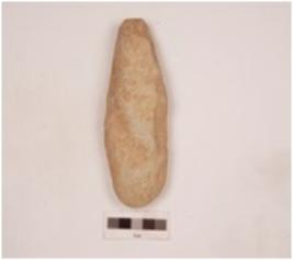 | Description / विवरण | An adze made on sandstone flake, plano-convex in cross section, sharp working edge and flake scars on both sides. |