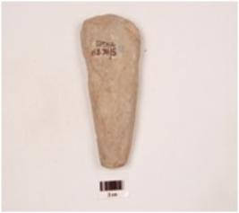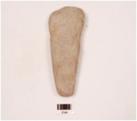 | Description / विवरण | An adze made on sandstone flake, plano-convex in cross section, polished surface and partly broken working edge. |
