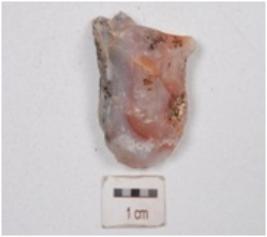 | Description / विवरण | A burin has blade scars and cortex on surface ,one point at one edge and slightly curved pointed working end |