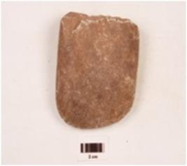 | Description / विवरण | A sandstone celt, pointed end, biconvex in cross section and broken from working edge. |