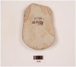 | Description / विवरण | A sandstone celt, plano-convex in cross section, use-wear marks along working edge and broken from other end. |
