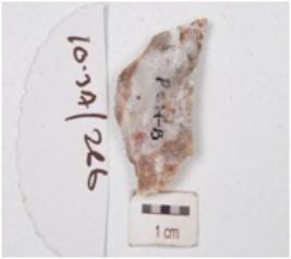 | Description / विवरण | A burin has blade scars and cortex on surface and slightly curved pointed working end |