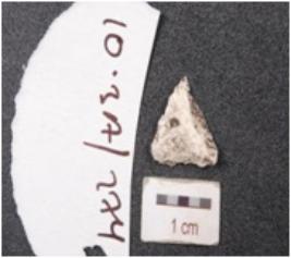 | Description / विवरण | A burin has blade scars on surface and slightly curved pointed working end |
