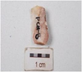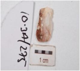 | Description / विवरण | A blade has medial ridge on dorsal surface , use marks on edges and short curved pointed end. |