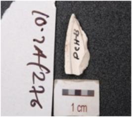 | Description / विवरण | A burin has blade scars on surface and slightly curved pointed working end |