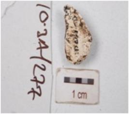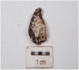| Description / विवरण | A burin has blade scars and cortex on surface and slightly curved pointed working end |