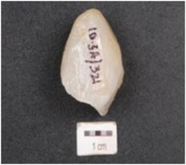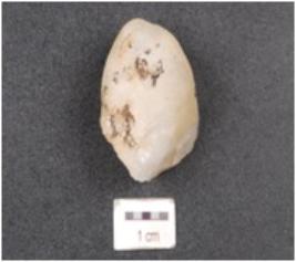 | Description / विवरण | A burin has blade scars and cortex on surface and slightly curved pointed working end |