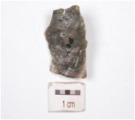 | Description / विवरण | A grey colour burin has blade scars on surface and slightly curved pointed working end |