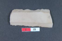 | Description / विवरण | A rectangular parallel sided blade with positive bulb of percussion on ventral side. It has two dorsal ridges and smooth surface. |