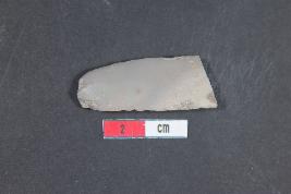 | Description / विवरण | Fragment of a blade with one dorsal ridge and bulb of percussion on the ventral side having smooth surface. |