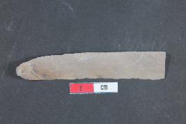 | Description / विवरण | Fragment of a blade with two dorsal ridges having smooth surface. |