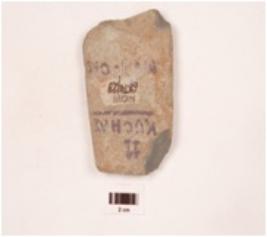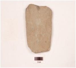 | Description / विवरण | A sandstone celt, biconvex in cross section and partly broken from both ends. |