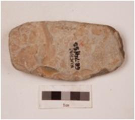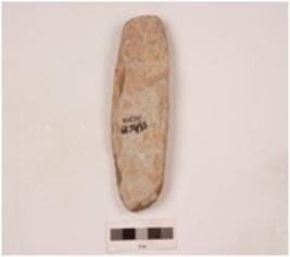 | Description / विवरण | A sandstone chisel, plano-convex in cross section and partly broken from edge. |