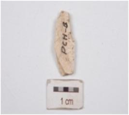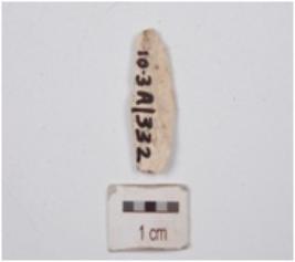 | Description / विवरण | A utilized flake has diffused bulb on ventral side and use wear marks on edges. |