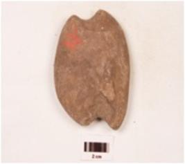 | Description / विवरण | An indeterminated disk shaped object made on basalt, polished surface, oval in shape, oval in section, groove on both the end. |