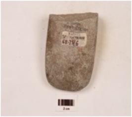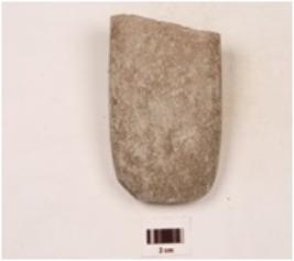 | Description / विवरण | Fragment of a celt made on basalt, broken along butt end, straight sharp road cutting edge, thick lateral sides intersection at the cutting edge, broad upper and lower surface with a gentle slope, polished surface rectangular in section. |