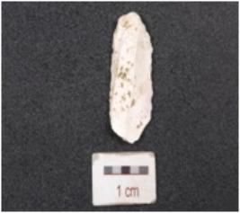 | Description / विवरण | A blade with double ridge on dorsal side and use wear marks on working edges. |
