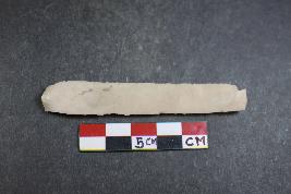 | Description / विवरण | A parallel-sided blade with positive bulb of percussion and two dorsal ridges having smooth surface. |