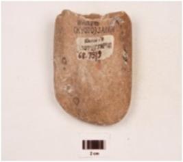 | Description / विवरण | A fragment of celt, broken butt end, convex sharp broad cutting edge, oval in section, broader upper and lower surface with a gentle slope, polished surface. |