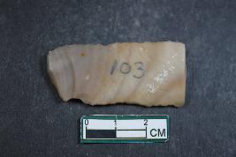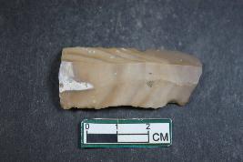 | Description / विवरण | A fragment of a parallel-sided blade with two dorsal ridges having smooth surface. |