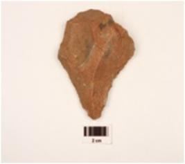| Description / विवरण | Scraper made on end struck chert flake, regular retoches along cutting edges, cortex present on surface, prepared platform, trapezodial in section, flake scars on dorsal surface. |