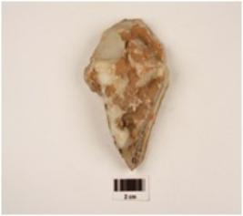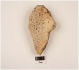 | Description / विवरण | Modified core made on chert, crystal lines on one surface. |