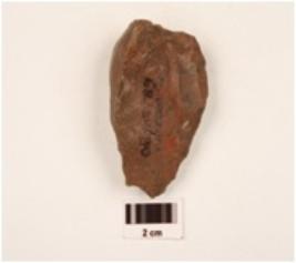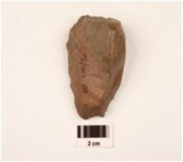 | Description / विवरण | Side scraper made on end struck chert flake, flake scars on dorsal surface, diffused bulb on ventral surface, regular retouches along cutting edges, trapezoidal in section. |
